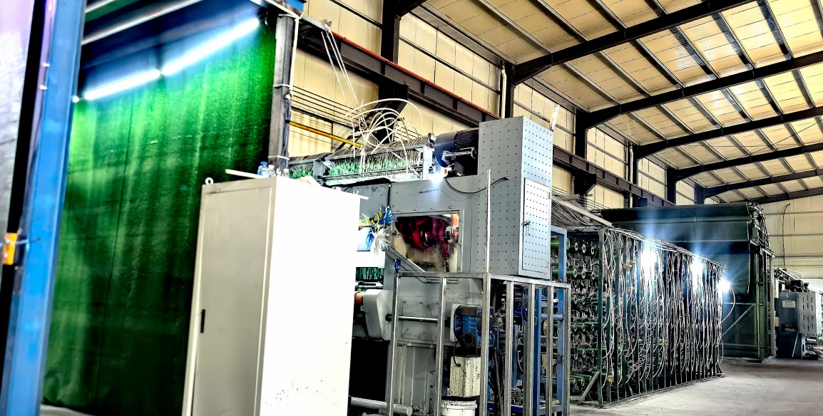Fig 1: Illustrative overview of artificial grass production, highlighting precision manufacturing.